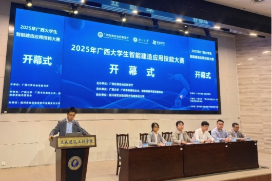 11月7日至8日,由广西壮族自治区教育厅主办、广西本科高校土木、建筑类教学指导委员会与广西大学联合承办的2025年广西大学生智能建造应用技能大赛,在万象城大型结构试验平台综合楼顺利举办,150余名院校代表、师生及行业专家齐聚现场参与活动。