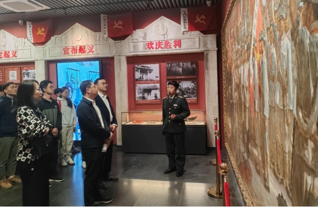 6日上午,在百色起义纪念馆庄严肃穆的展厅内,师生们深入了解邓小平等老一辈革命家领导百色起义的光辉历程,深刻感悟“百折不挠、实事求是、依靠群众、团结奋斗”的百色起义精神。随后,在场党员共同回顾了红七军将士转战南北、功勋卓著的英雄事迹。从《红七军大事记》的峥嵘岁月,到土地革命战争时期的著名战役,再到解放战争时期的辉煌战果,革命先辈坚定的理想信念和不怕牺牲的斗争精神,让每一位党员都接受了深刻的思想洗礼。